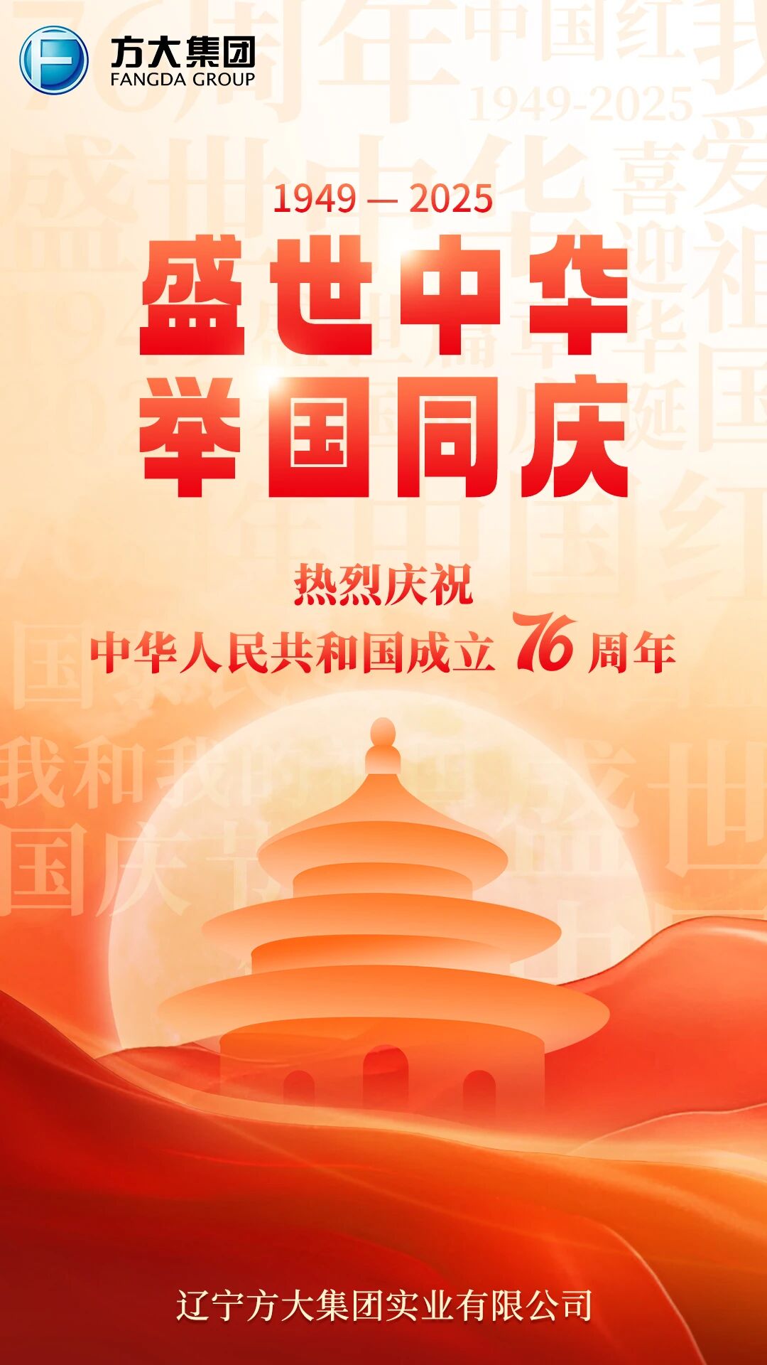盛世中華 舉國(guó)同慶 遼寧方大集團(tuán)熱烈慶祝中華人民共和國(guó)成立76周年